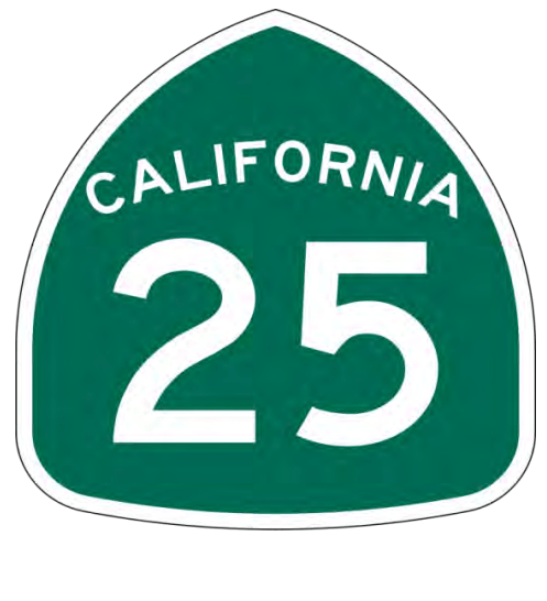 - Highway 25 is located in 2 Caltrans Districts. District 4, which covers the Santa Clara County portion and District 5, which includes the San Benito County stretch.