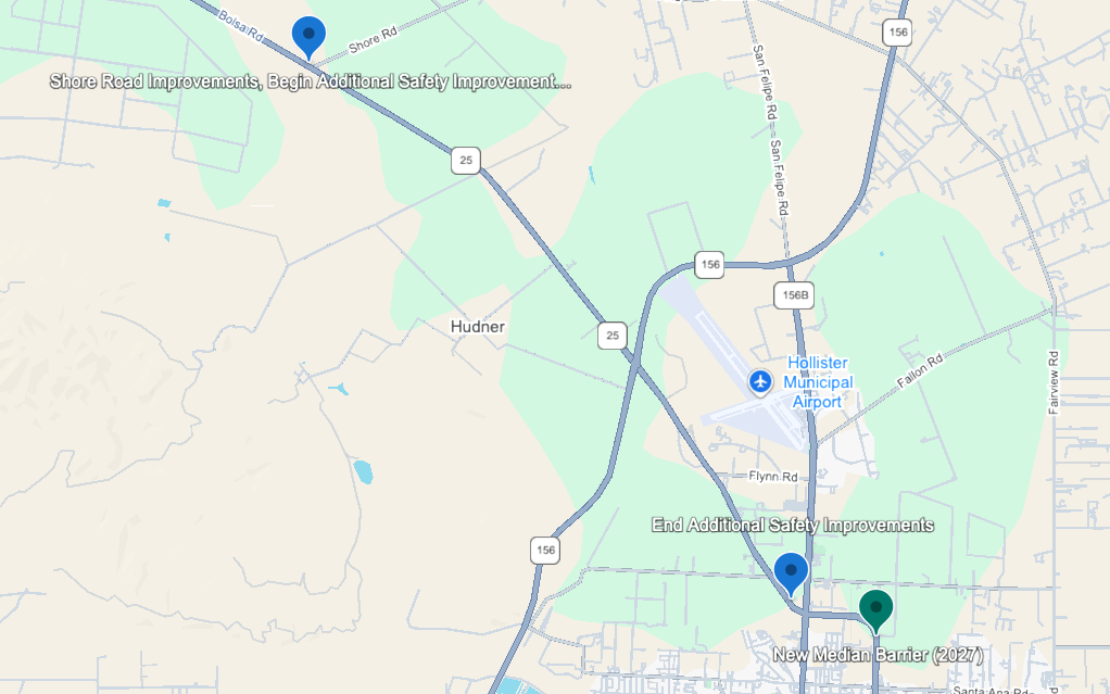 A separate improvement project constructing a median barrier on Highway 25 from San Felipe Road to Santa Ana Road is also being prepared for construction in 2027.