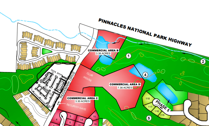 The project has a major commercial component located near the current intersection of Ridgemark Drive and Highway 25. The project proposes a new 154 room hotel on Area D above adjacent to a redesigned clubhouse and restaurant space. On either side of the clubhouse you’ll see two proposed commercial lots totaling 45,000 square feet. Across Ridgemark Drive from Area C and D is the previously approved commercial component. The projects proposed phasing has commercial areas developed in phases as opposed to all at once.